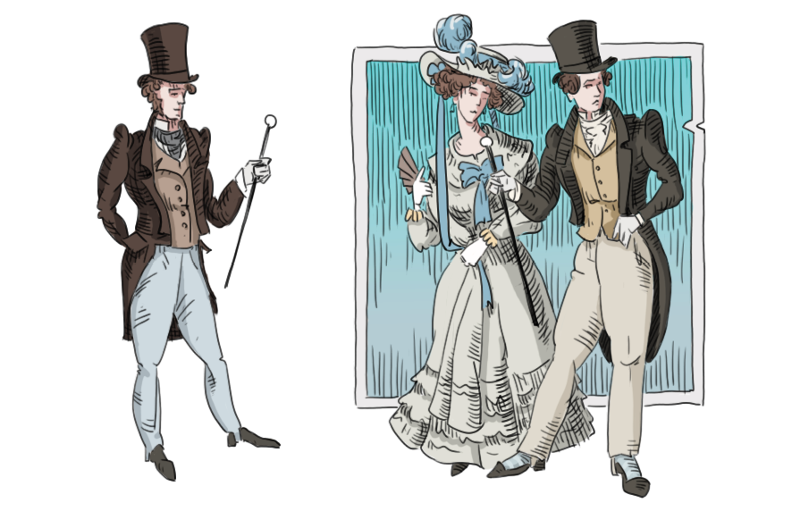 Извольте. Чтобы одеться как лондонский денди, вам понадобятся: фрак за 150 рублей ассигнациями, жилет за 40 рублей, батистовая рубашка за 50 рублей, пара шелковых чулок — 15 рублей, шейный платок — 5 рублей, трость — 17 рублей и часы Breguet за 1000 рублей. Ах да, прическа обойдется рублей в 20, и это не считая ежедневного бритья.