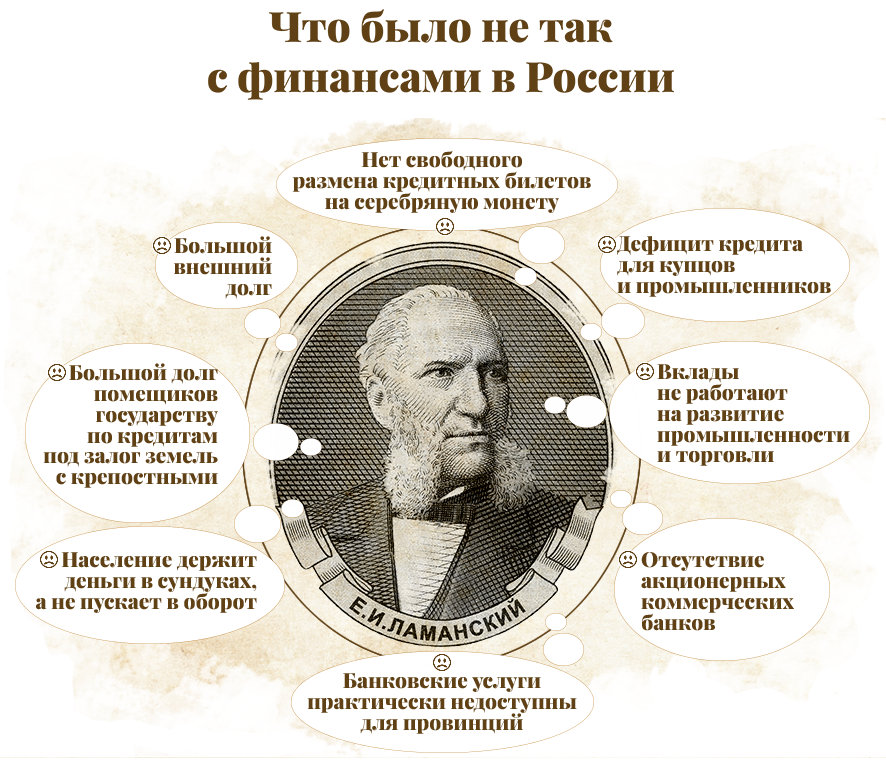 Эпоха Ламанского не терпела полумер. С 1860-х годов двухуровневая банковская система России только начинала складываться, в то время как в Западной Европе банки уже играли роль кровеносной системы экономики.