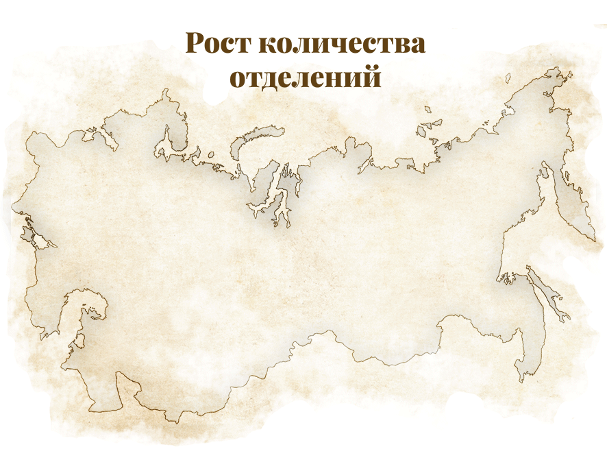 С 1862 по 1880 годы открыты филиалы в Астрахани, Баку, Бердянске, Борисоглебске, Вильне (ныне Вильнюс), Владимире, Вологде, Воронеже, Вятке, Екатеринославе (ныне Днепр), Житомире, Иркутске, Казани, Каменец-Подольске, Кишиневе, Козлове (ныне Мичуринск), Красноярске, Курске, Либаве (ныне Лиепая), Моршанске, Нижнем Новгороде, Николаеве, Оренбурге, Пензе, Перми, Полтаве, Пскове, Ревеле (ныне Таллин), Ржеве, Ростове-на-Дону, Рыбинске, Рязани, Самаре, Саратове, Севастополе, Симбирске (ныне Ульяновск), Смоленске, Таганроге, Тамбове, Ташкенте, Твери, Тифлисе (ныне Тбилиси), Томске, Уральске, Уфе, Херсоне и Ярославле.