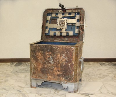 В полковой кассе XIX века перевозили деньги на нужды армии. Открыть ее было непросто. Для этого нужно было найти потайную замочную скважину, о которой знал только владелец. Достаточно было потянуть за одну из ручек на крышке – и поднималась специальная пластина, под которой спрятано отверстие для ключа.
